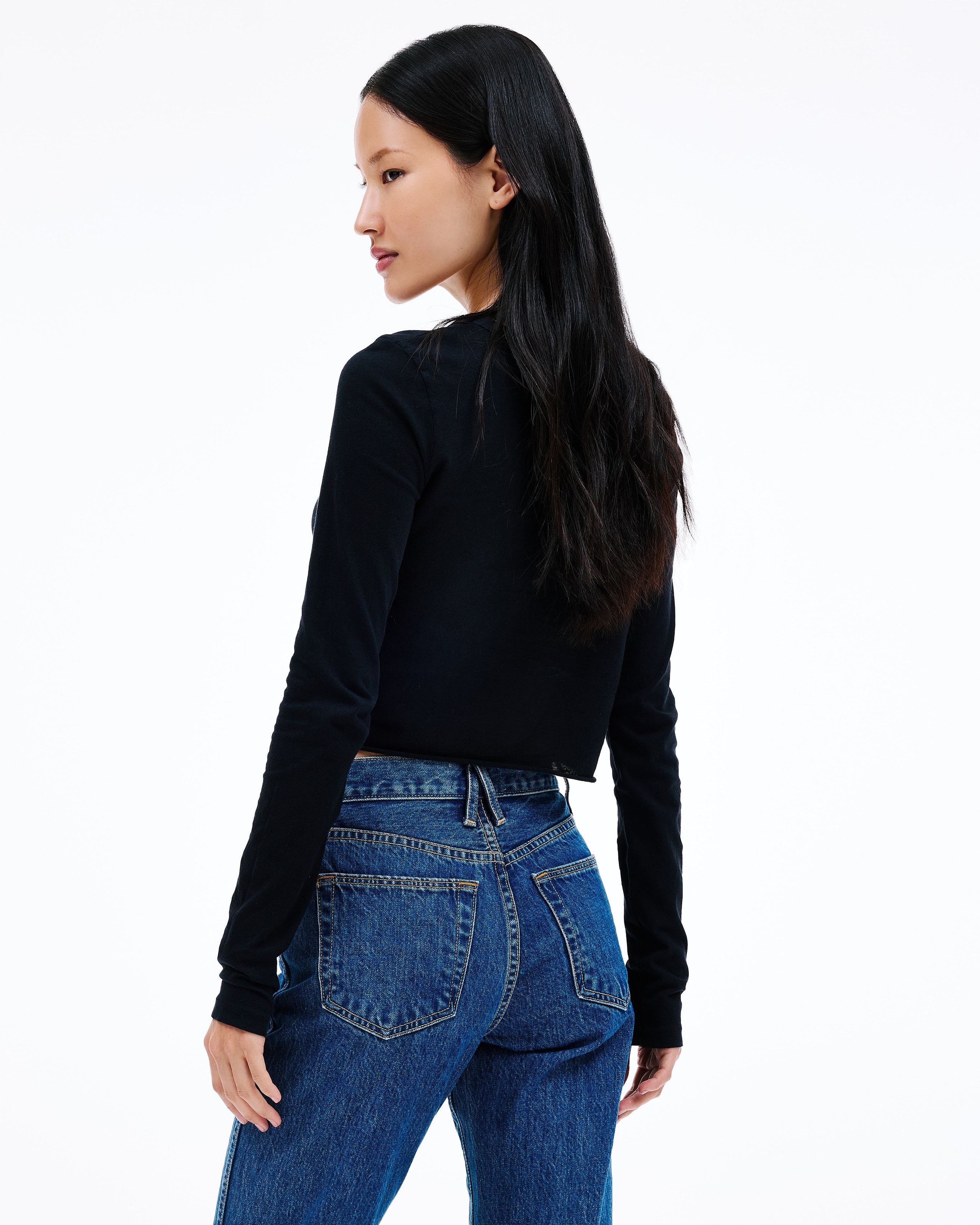 Baby Long Sleeve crafted from a unique light weight open-end fabric for an authentic vintage look and feel. Designed with a cropped length and hand finished with a raw hem detail.