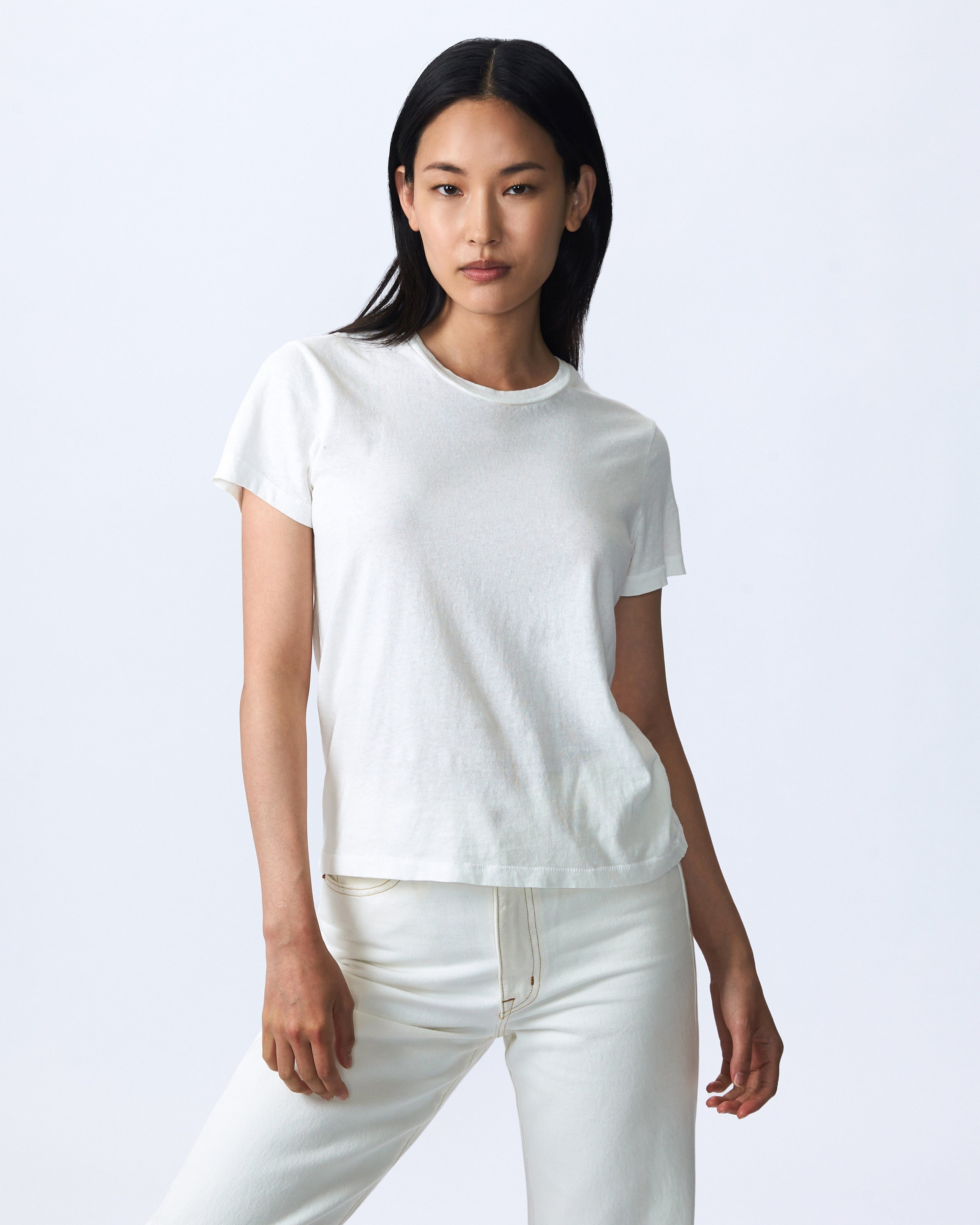 Natural White is crafted from a soft lightweight open-end fabric and finished with a garment-dyed treatment for an authentic vintage look and feel.