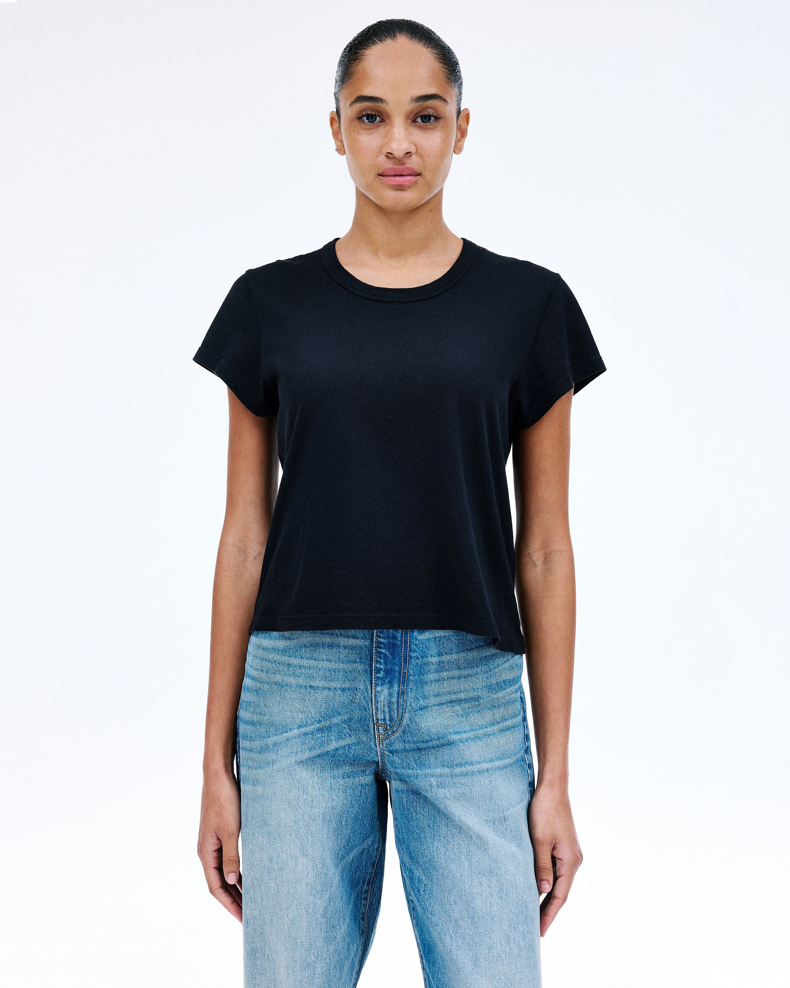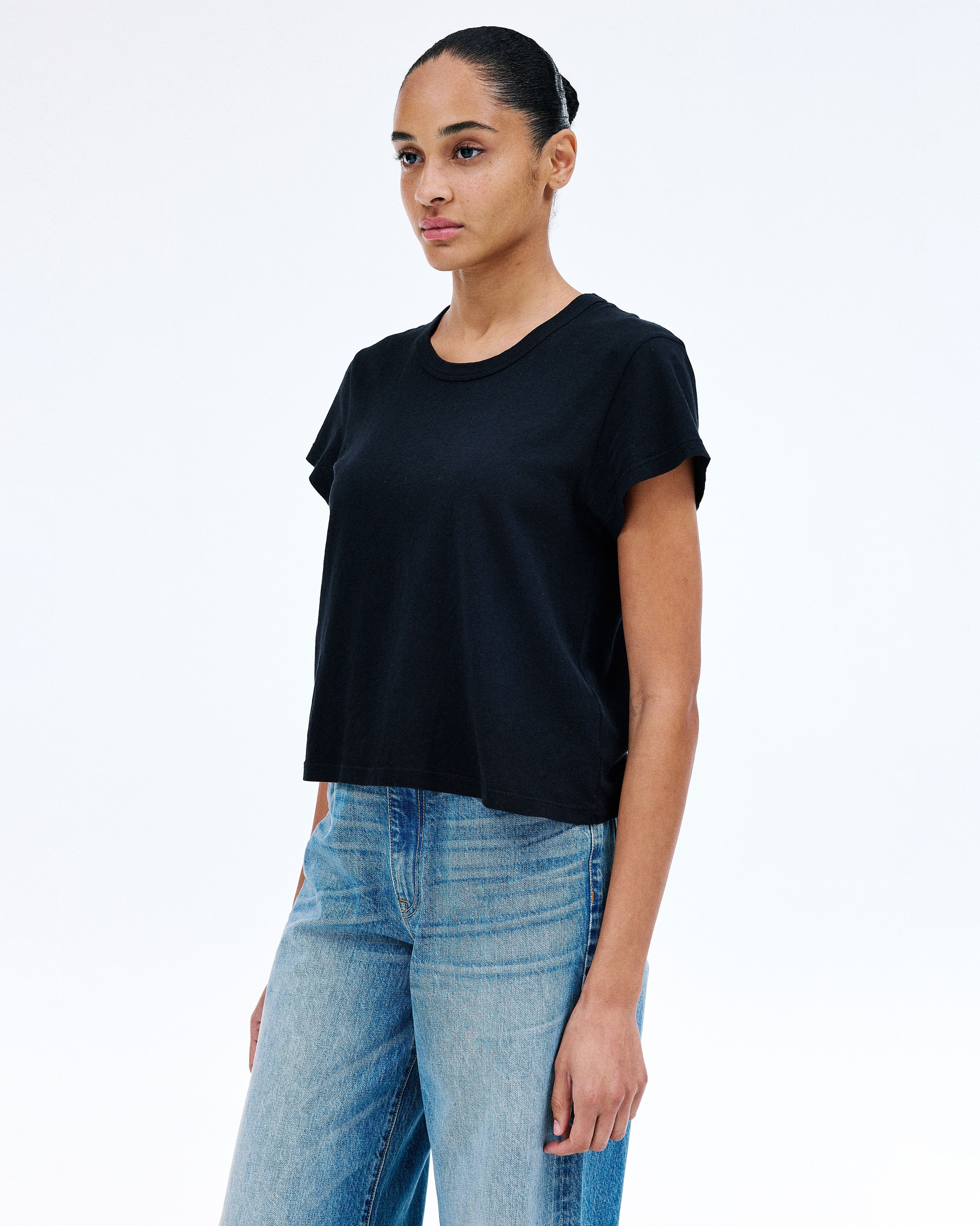 Crafted from a mid weight open-end fabric for an authentic vintage look and feel. This modern silhouette features a cap sleeve.