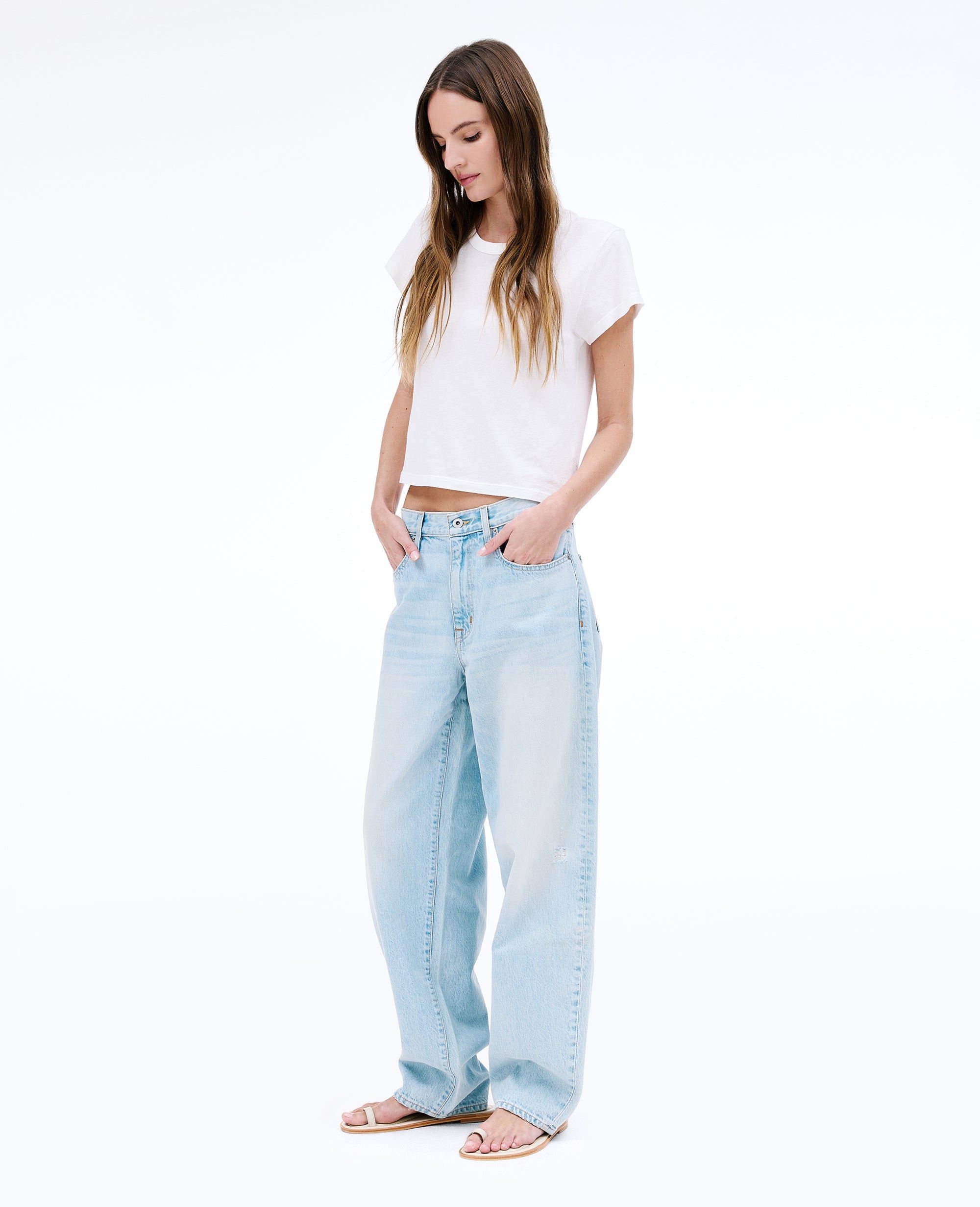Ella features a relaxed body and curved leg with a mid-rise waist, offering an effortless yet refined fit.