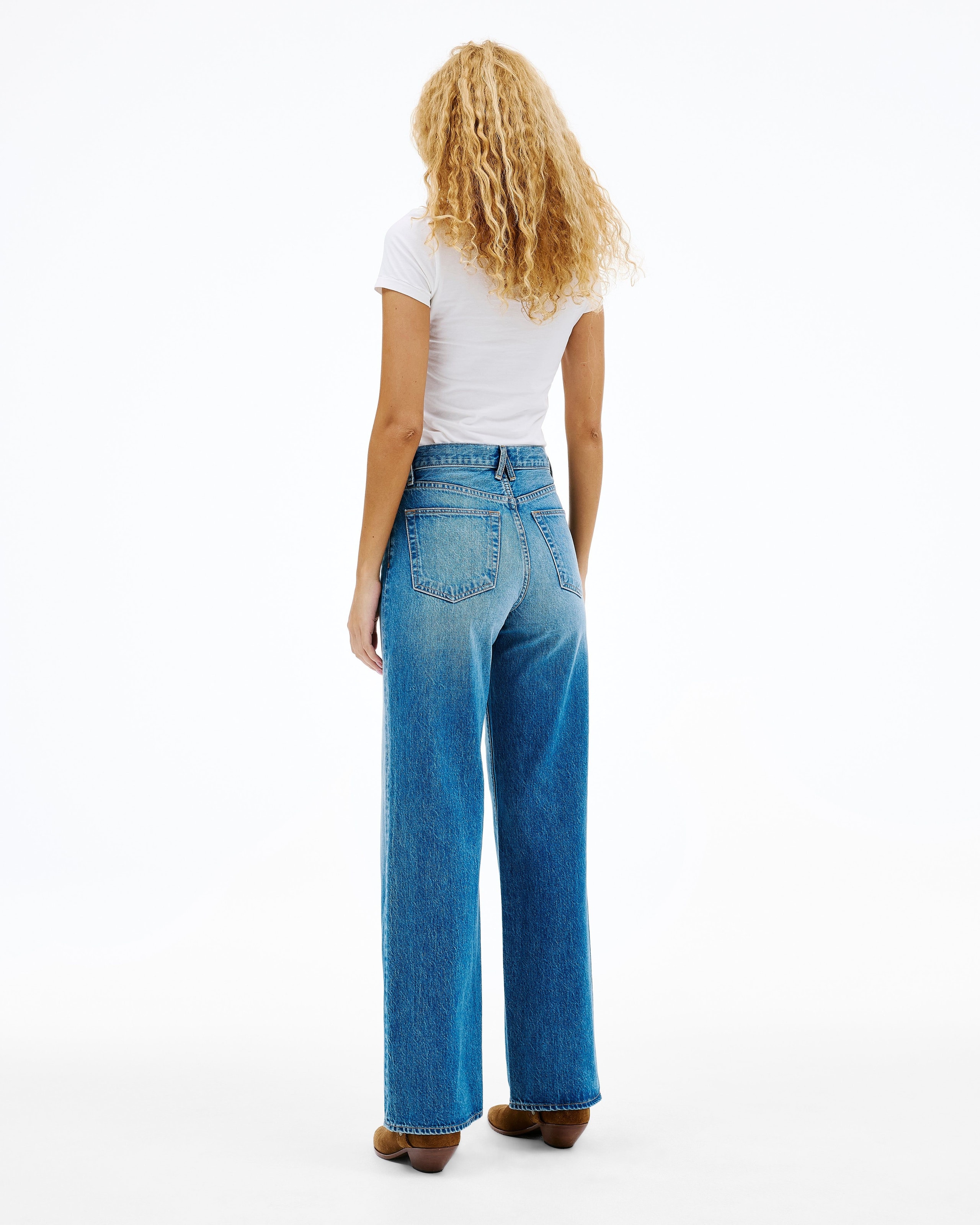 Crush On You is crafted from 100% regenerative cotton and features a classic mid-blue stone wash with subtle hand-detailed whiskering and a finished hem, offering a clean and modern look.