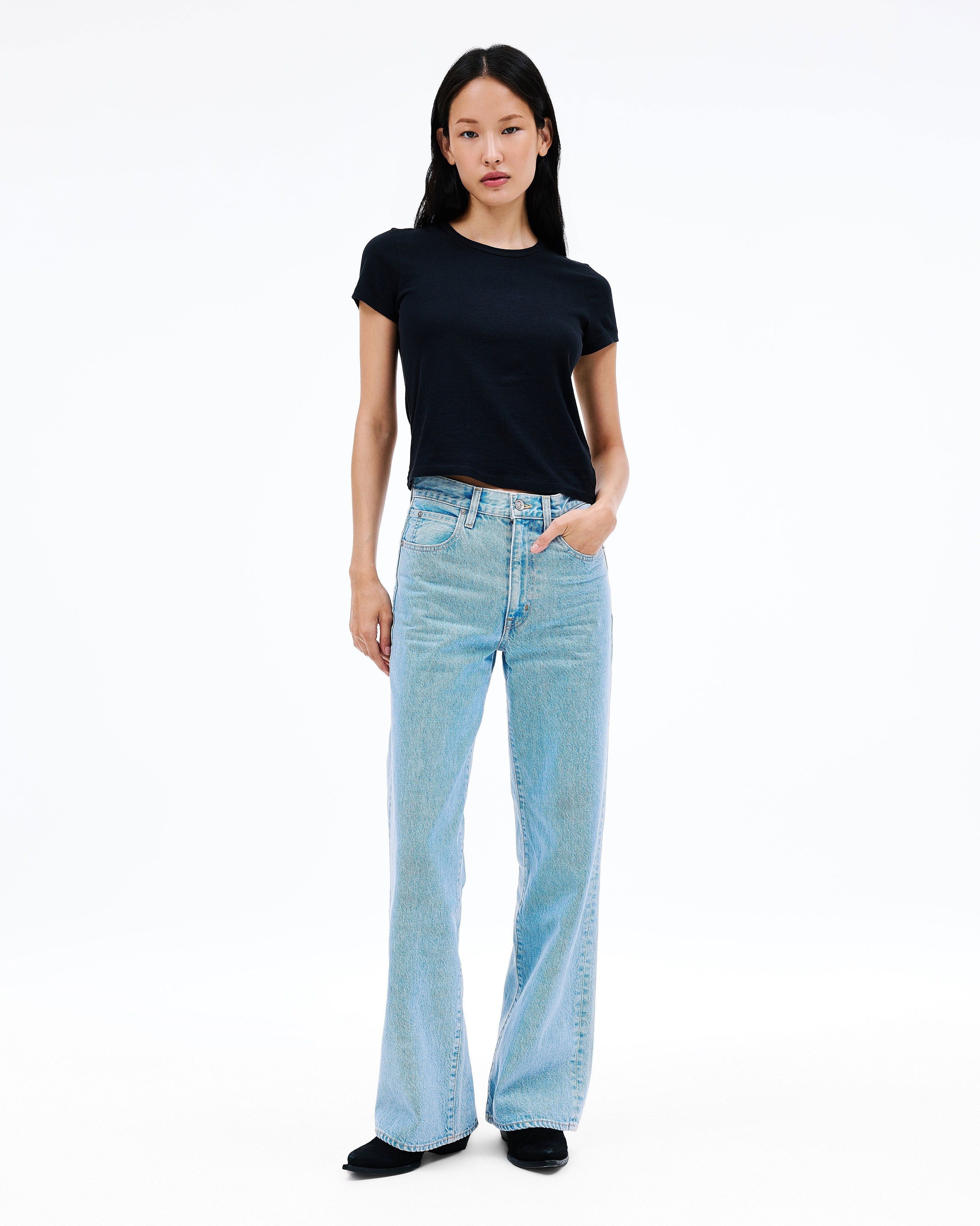 Grace is a SLVRLAKE signature style designed to elongate the leg. Featuring a high-rise waist and wide-leg silhouette, it fits close through the waist and hip before flowing through the leg, finished with a raw hem. An essential style offering versatile styling options.