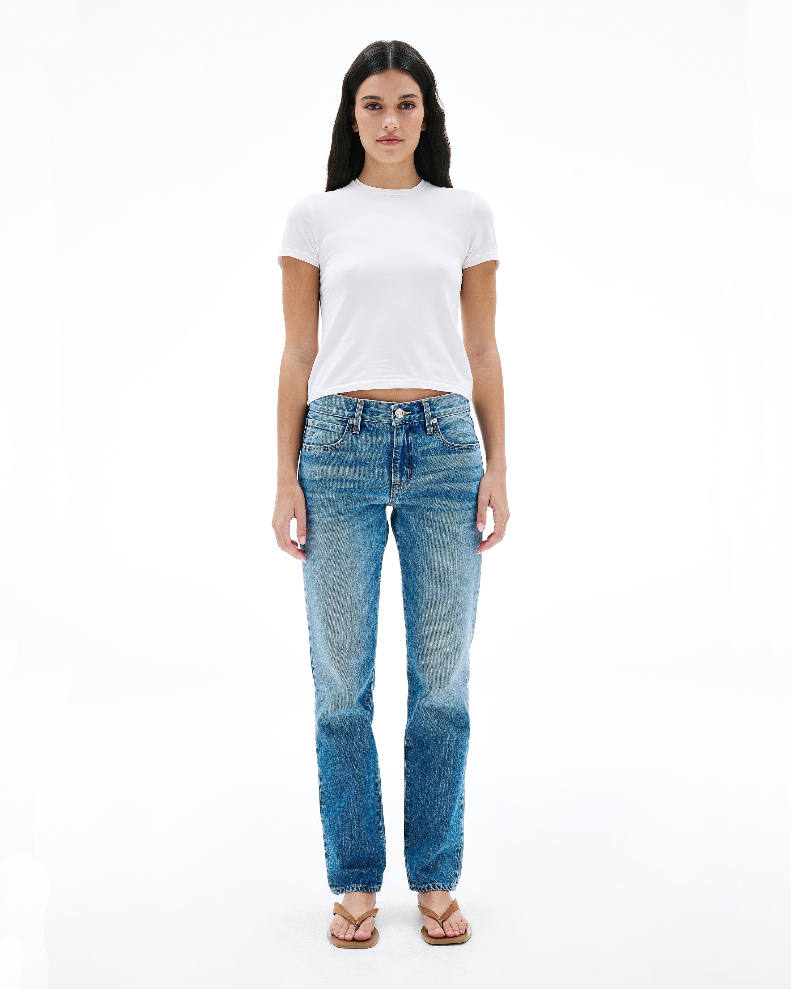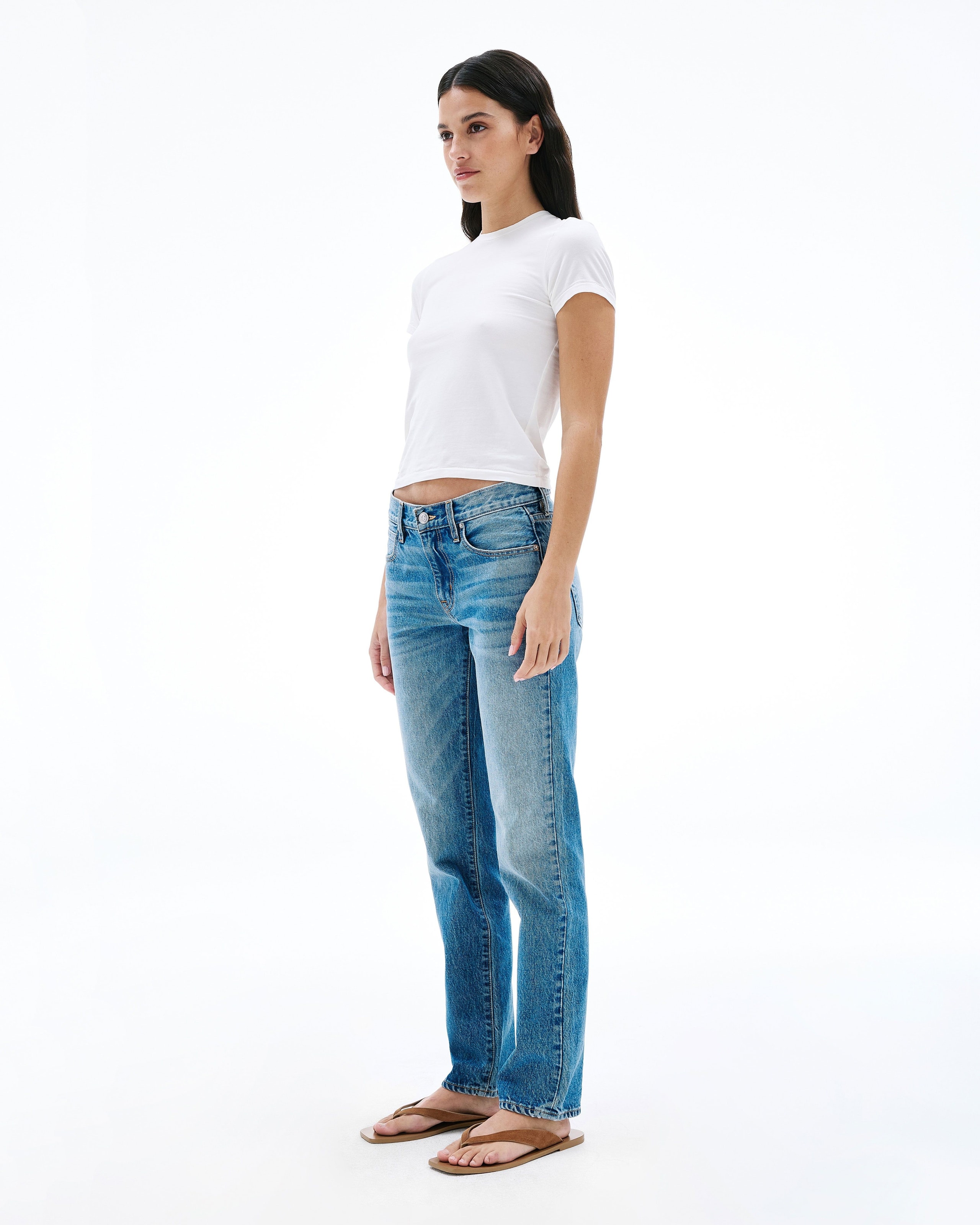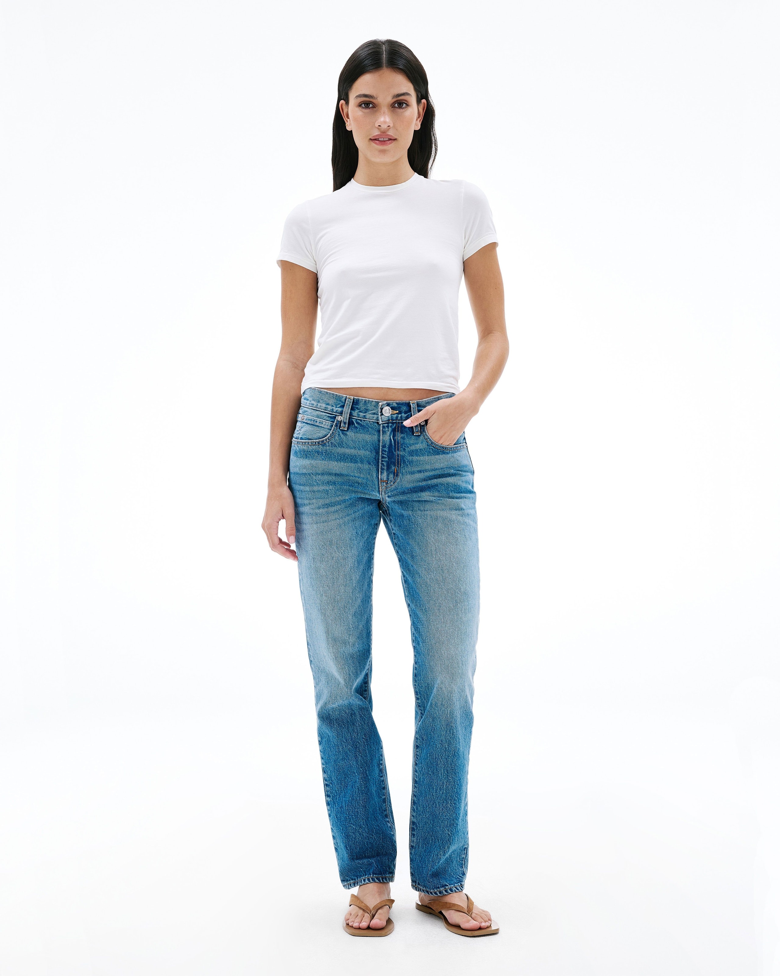 Isabel is a new style crafted from 100% regenerative cotton, featuring a low-rise waist and a slim leg that balances structure with ease. Finished with classic five-pocket styling and SLVRLAKE’s signature engraved hardware.