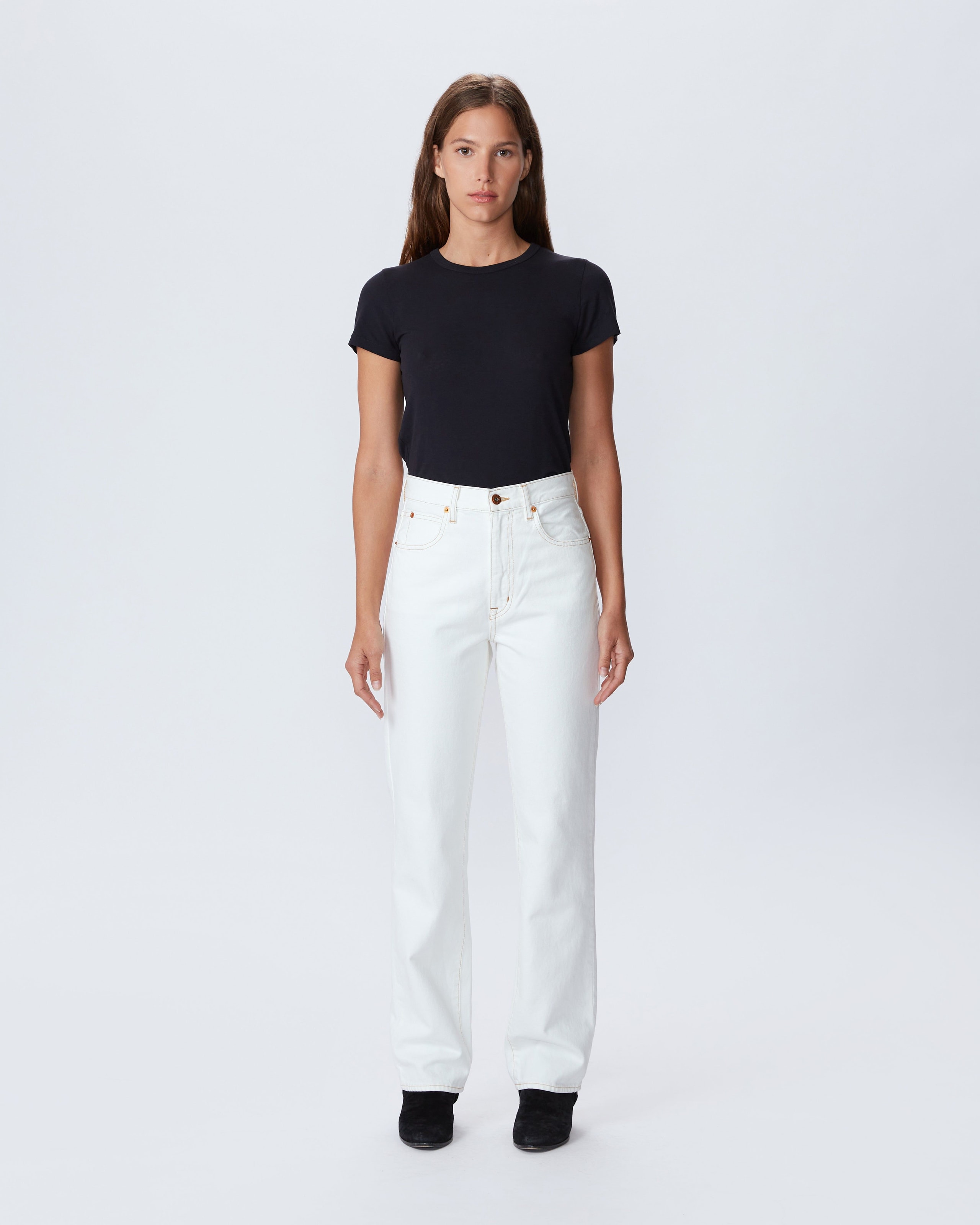 This signature style is designed to fit and flatter the feminine form, visually elongating the leg with a straight leg silhouette and high rise.
