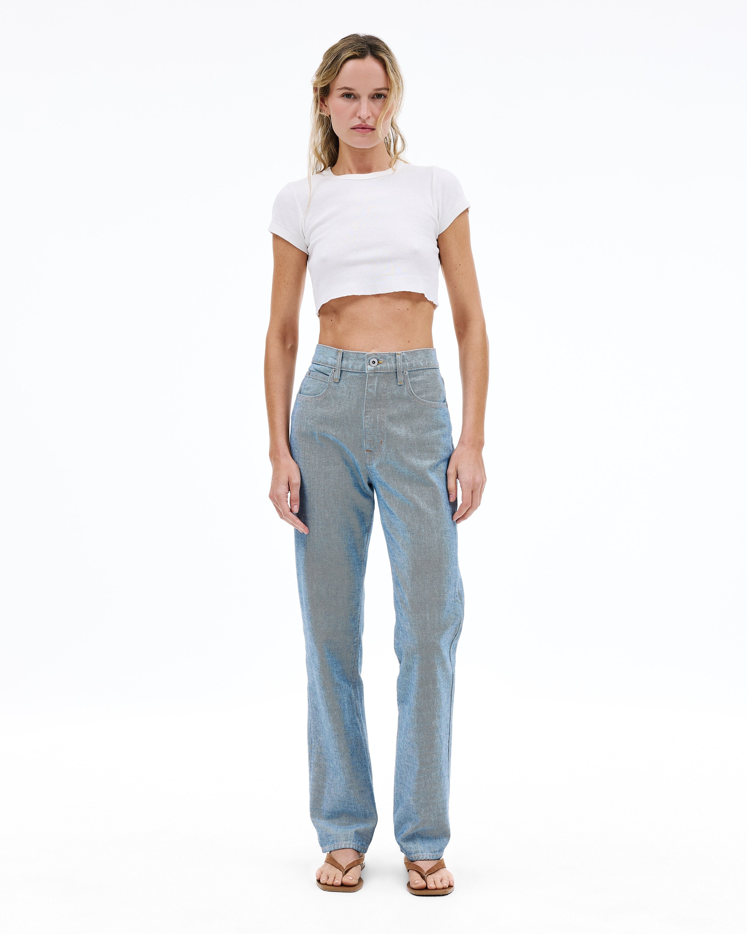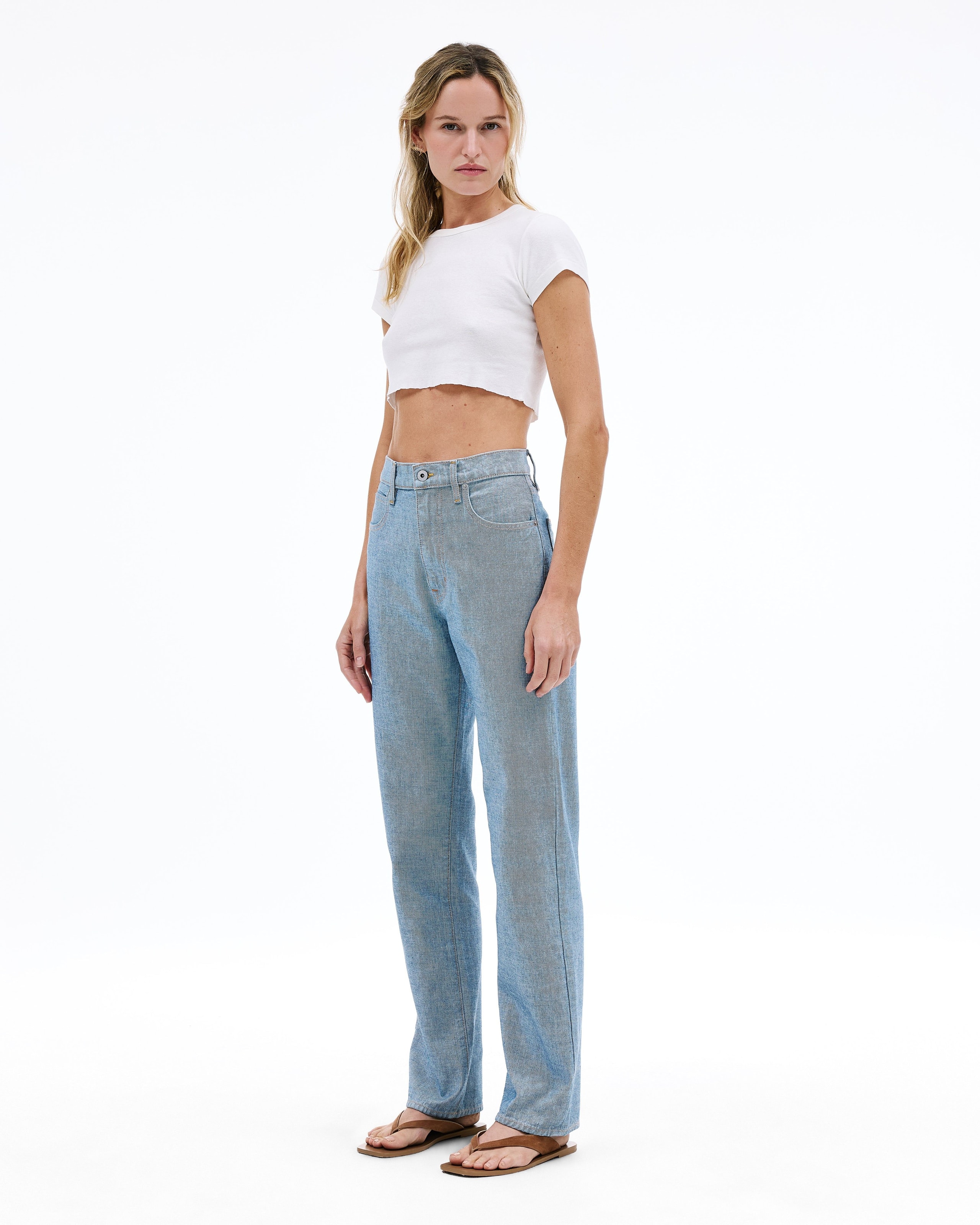 This signature style is designed to fit and flatter the feminine form, visually elongating the leg with a straight leg silhouette and high rise.