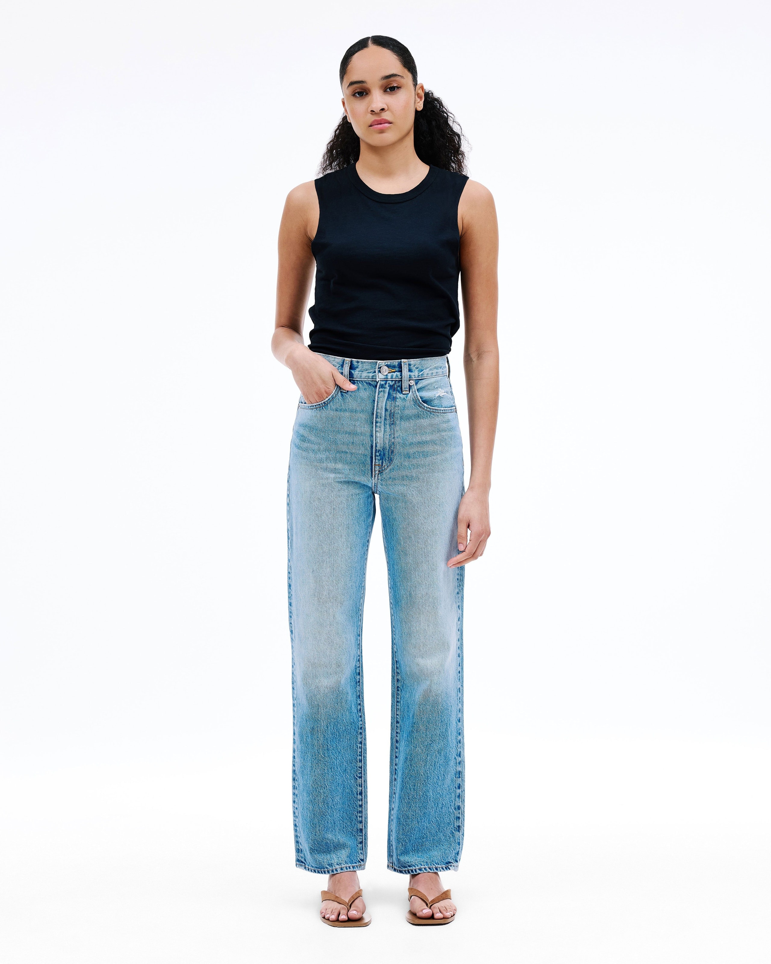 This signature style is designed to fit and flatter the feminine form, visually elongating the leg with a straight leg silhouette and high rise.